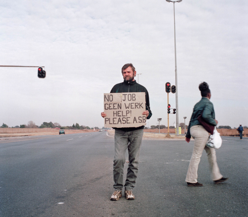 This project, made between 2002 and 2006 looked for answers to the questions: What is poverty? And what is its relationship to race? White poverty is not new, or specific to South Africa. Yet perceptions of who can or cannot be poor (or rich) persist in the mind of many of their citizens. In a country where the gap between rich and poor is ever-increasing, and having been deprived of some of their privileges like job reservation, and extensive state support, the white poor must seek ways to adapt or at least survive.