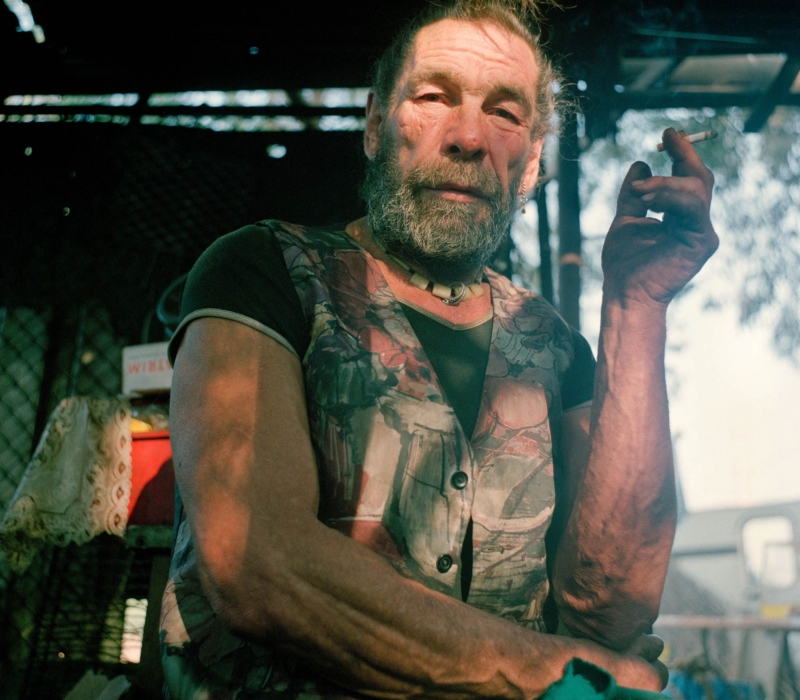 Nicknamed Satan by his neighbours, “because of this”, he points to a snake pendant necklace around his neck but perhaps more because of his intimidating presence, his long hair tied in a ponytail, lack of social graces and that he has his own squatter camp under a clump of blue gum trees in the middle of Danville, a historically poor whites area stuck between industrial west Pretoria and Atteridgeville.